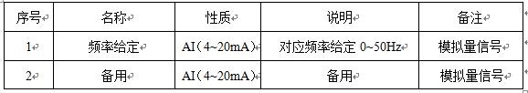 為了更方便的操作,變頻器的起停在機(jī)器旁邊的箱子里進(jìn)行控制,在DCS上進(jìn)行監(jiān)視。頻率調(diào)節(jié)由前級(jí)傳感器返回的電流模擬信號(hào)(4-20mA)進(jìn)行PID控制。具體控制信號(hào)如下: