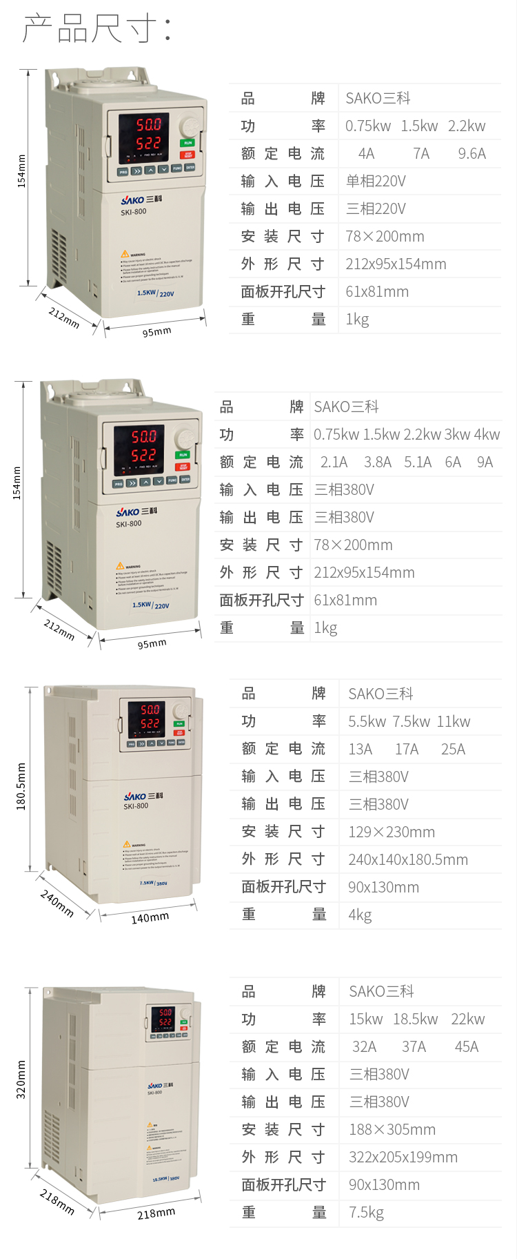 產(chǎn)品型號(hào) SKI800A0D75G-4 SKI800A1D5G-4 SKI800A2D2G-4 SKI800A3D0G-4 SKI800A4D0G-4