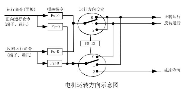 變頻器Variable-frequency Drive,VFD)在恢復(fù)出廠參數(shù)后,按下“RUN”鍵,VFD驅(qū)動馬達(dá)的轉(zhuǎn)向,稱為正向,若此時(shí)的旋轉(zhuǎn)方向與設(shè)備請求的轉(zhuǎn)向相反,請將F0-13=1或斷電后(留意待VFD主電容電荷泄放終了),將VFDUVW輸出線中的任何兩個(gè)接線掉換一下,掃除旋轉(zhuǎn)方向的問題。