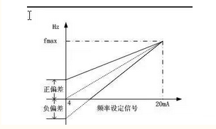 在給定信號從0增加至最大值的過程中(如4~20mA),給定頻率fX線性的從0增大至最大頻率的頻率給定線就是基本頻率給定線。如給定信號I=4~20mA, 要求對應的頻率為0~50Hz,如圖1所示。