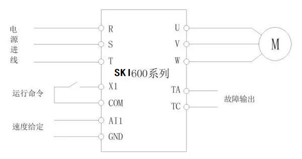 1、采用SKI600磁通矢量控制模式,根據(jù)電機銘牌設(shè)置電機參數(shù),旋轉(zhuǎn)自學(xué)習(xí)。