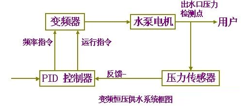 恒壓供水變頻柜是一種新型的節(jié)能供水設(shè)備。變頻恒壓供水設(shè)備系運用了微電腦控制技術(shù),可將變頻調(diào)速器與電機水泵結(jié)合為機電一體化高效節(jié)能供水裝置。變頻恒壓供水設(shè)備以水泵出水端水壓(或用戶用水流量)為設(shè)定參數(shù),通過微機自動控制變頻器(Variable-frequency Drive,VFD)的輸出頻率從而調(diào)節(jié)水泵電機的轉(zhuǎn)速,實現(xiàn)用戶管網(wǎng)水壓的閉環(huán)調(diào)節(jié),使供水系統(tǒng)自動恒穩(wěn)于設(shè)定的壓力值:即用水量增加時,頻率提高,水泵轉(zhuǎn)速加快;用水量減少時,頻率降低,水泵轉(zhuǎn)速減慢。這樣就保證了整個用戶管網(wǎng)隨時都有充足的水壓(與用戶設(shè)定的壓力一致)和水量(隨用戶的用水情況變化而變化)。